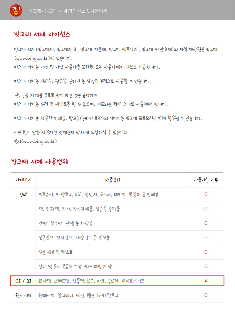 출처 - www.bingfont.co.kr/license.html
